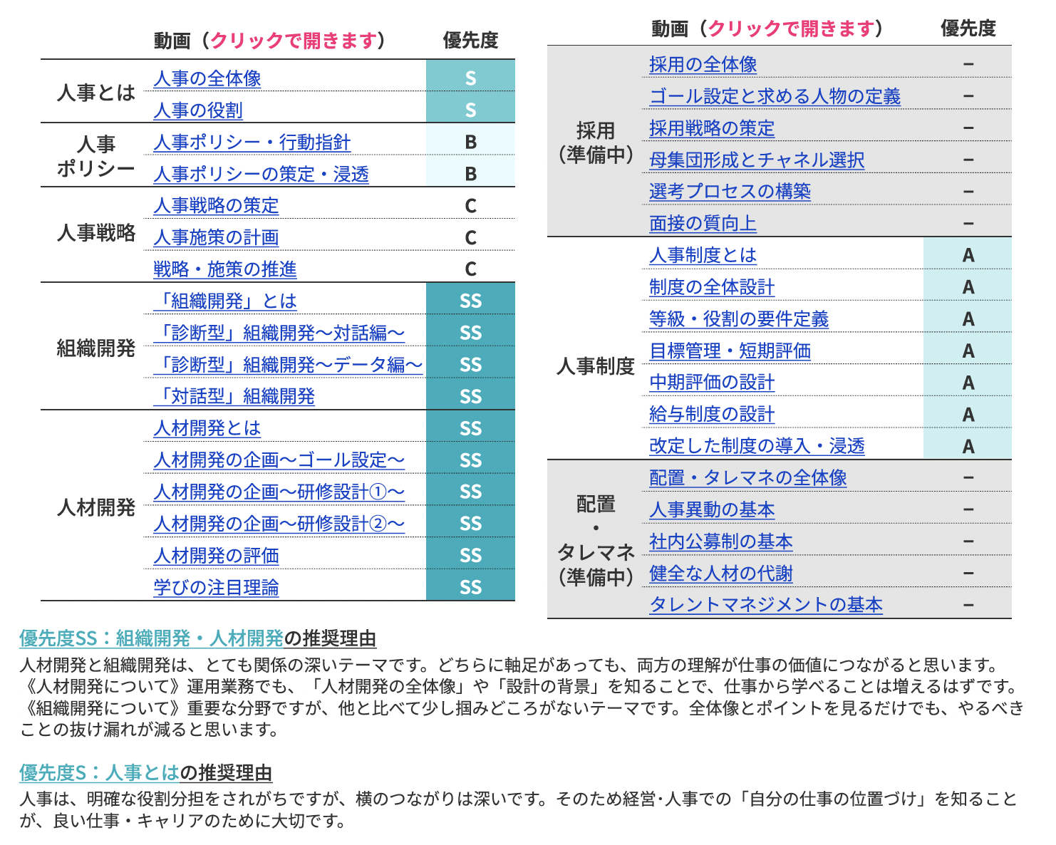 「各分類の方が見るべき動画とその理由」を掲載しています。