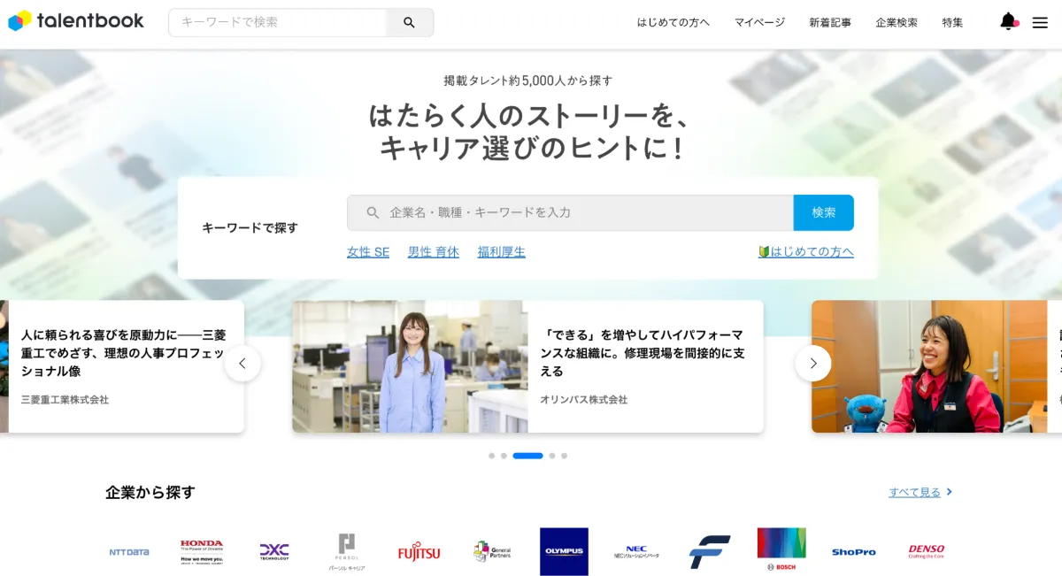 まずtalentbookの特徴として、年間延べ300万人の学生やビジネスパーソンが就職活動や転職活動で訪問し、掲載されている企業の働く場としての魅力を社員を通じてより詳しく知ることができるサイトになってます。Z世代やミレニアル世代の方々も多く訪れています。